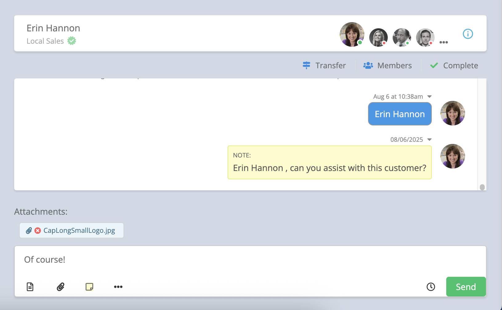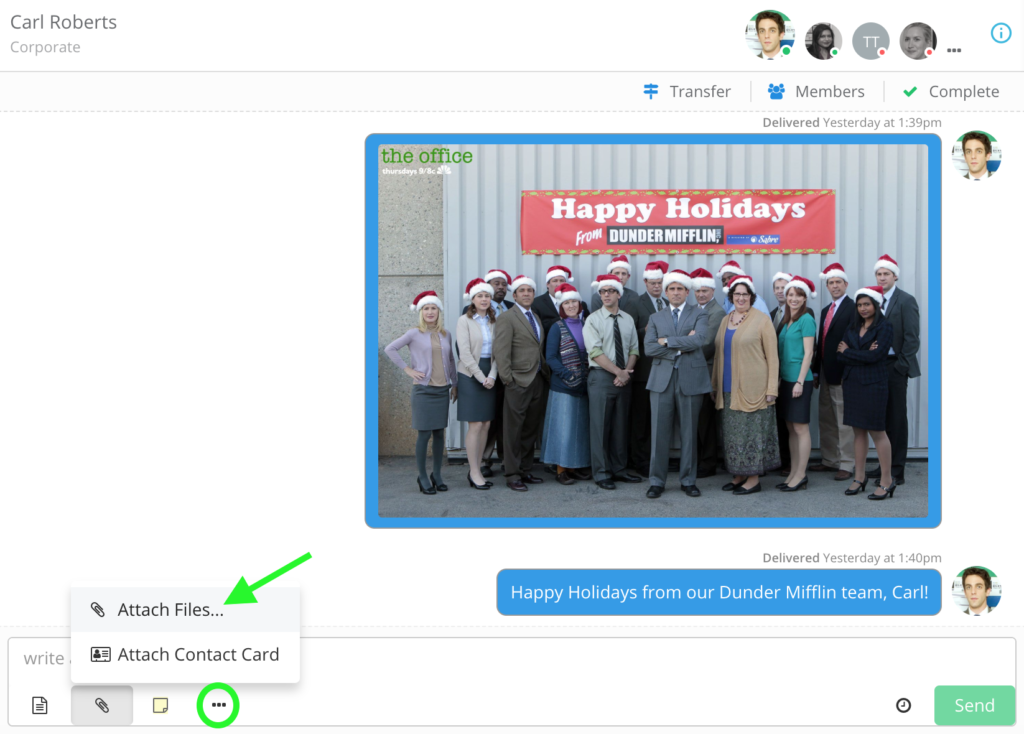 You can send several types of attachments in Captivated including photos (.png, .jpeg etc), videos, PDFs, Word and Excel files. To send an attachment, select the paperclip icon underneath the message field. Choose your attachment, add a message along with the file if desired, then send your message.
